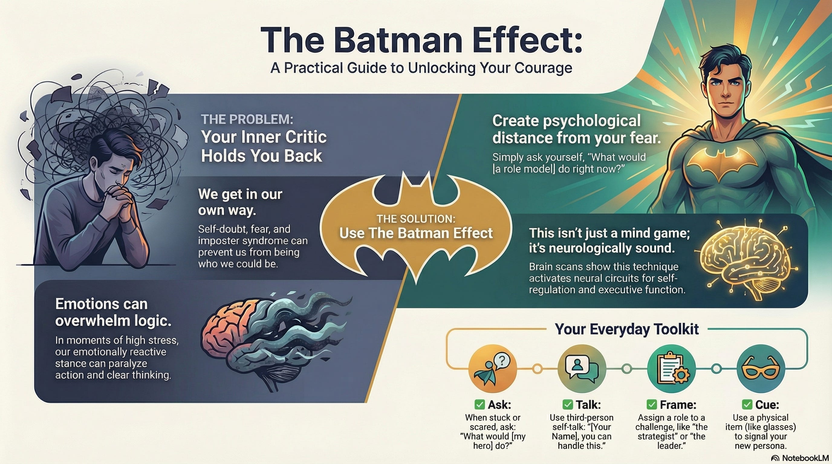 This is the quiet power of the Batman Effect: it’s not about delusion, it’s about perspective. It helps us step out of the mental trap of “I can’t” and into the mindset of “What would someone strong do?” That distance unlocks a door to action.
